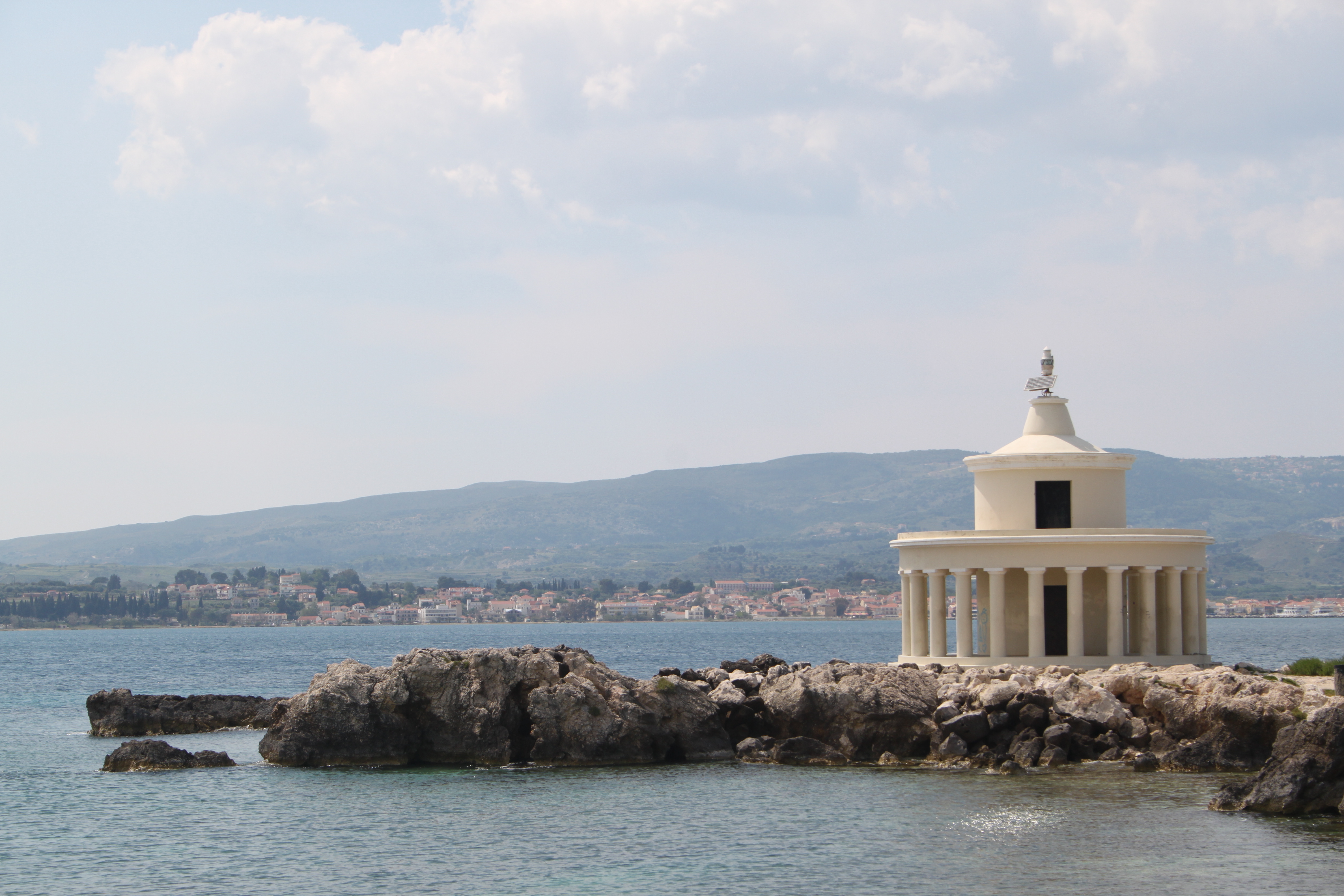 This is the castle of Agios Georgios (St George) and is a ruined castle prominently situated on top of a hill about 8 km south of Argostoli. You can drive to the top of the hill, parking in the village and then walk to the castle which closes at 14:30. The castle was the capital and administrative seat of the island until 1757 and the nobility lived within the walls. Following the emergence of Argostoli as the capital the castle fell into ruins.There are 3 nice restaurants/coffee shops ( The Olive Lounge,To Castro & Il Borgo ) which are well worth a visit.